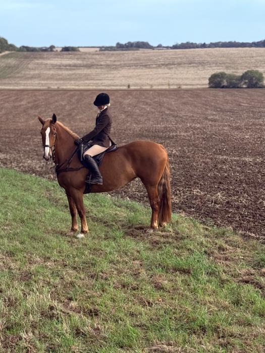 Hard found allrounder, who hunts, jumps, does it all but quiet enough for a novice. Gorgeous 16.2hh Irish 2018 Chesnut mare, who can do it all. Three elastic paces and an easy peasy ride. This substantial well built girl is a lovely hunter, great with hounds, will stand like a rock and is anyone’s ride. She has been showjumping, bold to a fence and will go off any stride, she’s extremely confidence giving and has a ‘can do’ attitude. Pumpkin doesn’t hot up in open spaces, isn’t bothered if other horses rush up behind her or over take her, she’s just a genuinely safe girl. Pumpkin has cross country schooled, she is easy, laid back and quiet. Exceptional good in traffic no matter how big, she’s no different if alone or in company. Pumpkin is kind on the ground, easy to have around and mannerly, she’s been ridden by all types of riders with different abilities. Just a flawless, fun, super safe easy mare. She’s quiet enough for a riding school but could go hunting tomorrow, this absolute saint of a mare is open to any vet or trainer. £13000 Trial period available