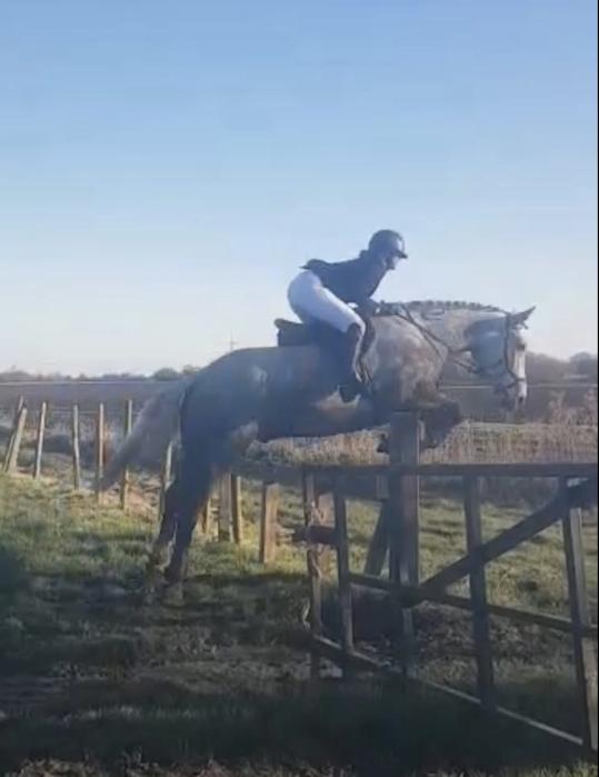 6 yr old quality 17hh full ID Gelding by Scrapman. Stunning boy with bags of potential. Brought on slowly and unspoilt. Placed in hand at County Level as a 2 yr old. Won Ridden Hunter age 4. Done dressage, XC schooling, SJ schooling. Been hunted a few times, proving to be happy in the field, good with hounds. Keen to learn. Honest boy, good to shoe,box,clip, catch etc, easy in the stable. Hacks alone & in company. Can have an odd spook. A very sad sale due to my health & lack of confidence & strength following spinal surgery, but this boy deserves a special someone who can take him much further. A very easy boy to have on a yard. Will make a fab Hunter/ Ridden Hunter/Working Hunter. Not for novice due to age & size and responds to a confident rider with more leg strength than I have. Good weight carrier Snaffle mouthed at all times, not strong. Note slightly pigeon toed but does not impact him at all inc tack ( Stubben bridle & Albion K2 jump saddle) & full wardrobe of rugs.