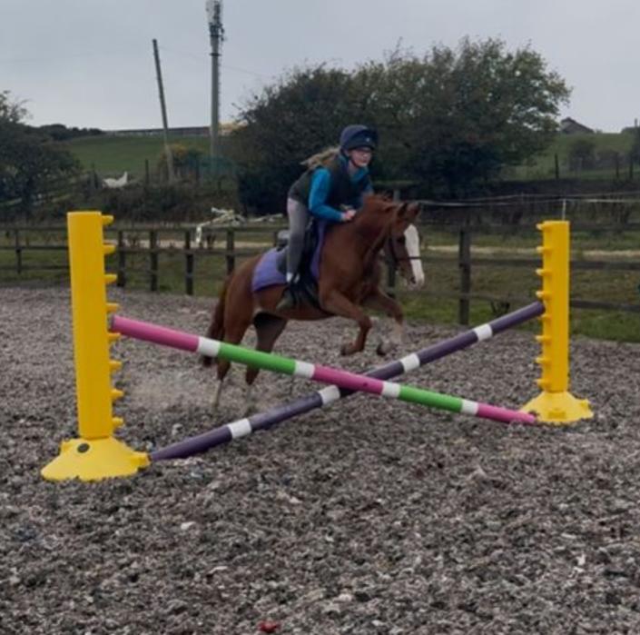 Maddie is the most perfect pony for someone wanting a lead rein or moving off lead rein. She schools lovely in the arena and looks after her rider, pops over fences and isn’t fazed by anything. She will go out show jumping and happily take her rider round a 50/60/70cm course. She loves hacking out and will go first or last and isn’t bothered by any sort of traffic. She's also been out hunting, pleasure rides and to the beach and was always foot perfect. She's up to date with everything and will stand to get everything done with her, she loves a fuss. She's a fab little pony and will be a big miss but sadly her rider has out grown her.