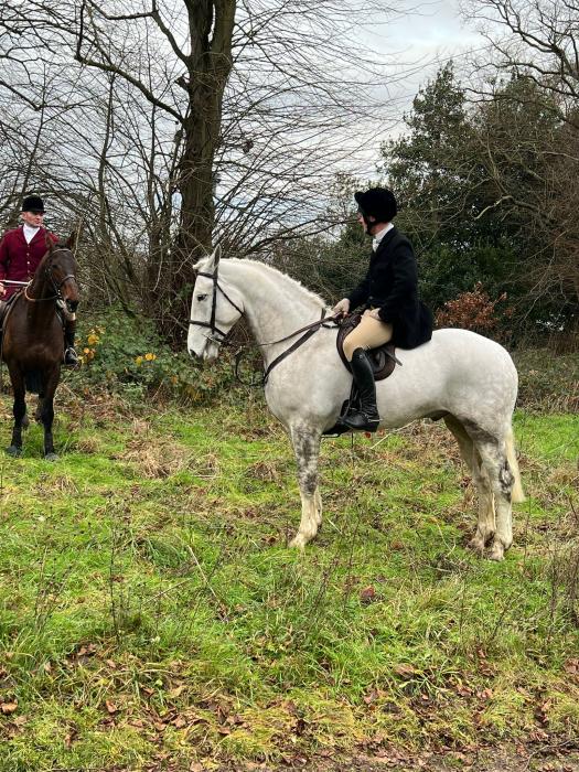 He hacks out alone or in company not phased by new surroundings been to a few training shows he always comes out with a laid back but willing attitude to life. Crosses lots of trappy hunt country jumps what ever is put at him rails, hunt jumps, ditches, hedges! Will go first or last great with hounds! Types like him are hard to find!