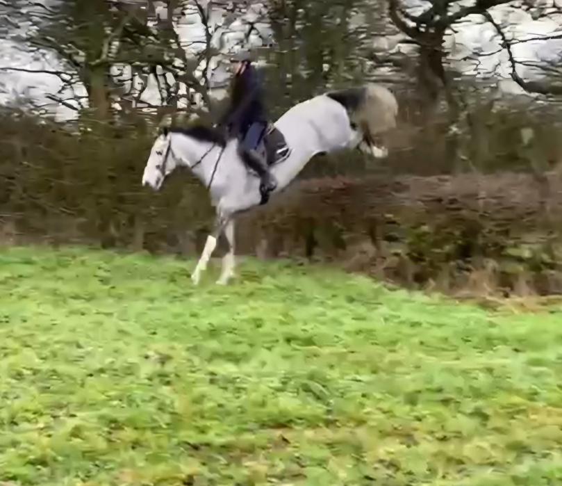 He is cross country schooling proving brave, careful and confident, good to hack he will go first or last. Hunting with various packs over a range of country rails, ditches hedges