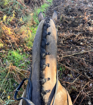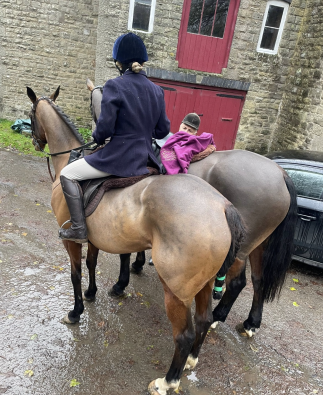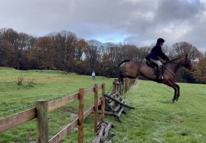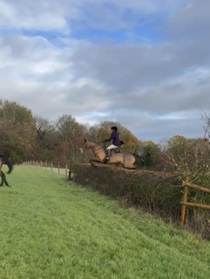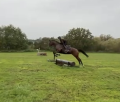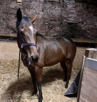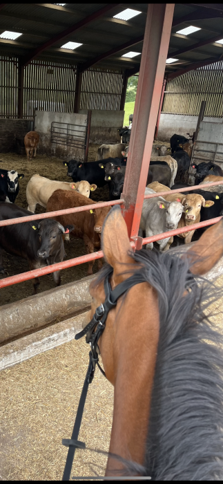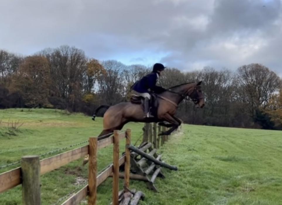She is bold & BRAVE!!!!!- at any fence / hedge . No stopping this mare if you are brave enough to let her take you just let her do her thing! She would make a cracking teamchaser as she absolutely loves her jumping . She came out of racing in April clean legged no lumps or bumps, no vices . Easy to do all all ways, hacks alone and in company , loads trailer & lorry first ask , brill for farrier , good to clip needs an extra hand for her head.