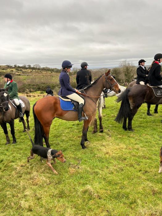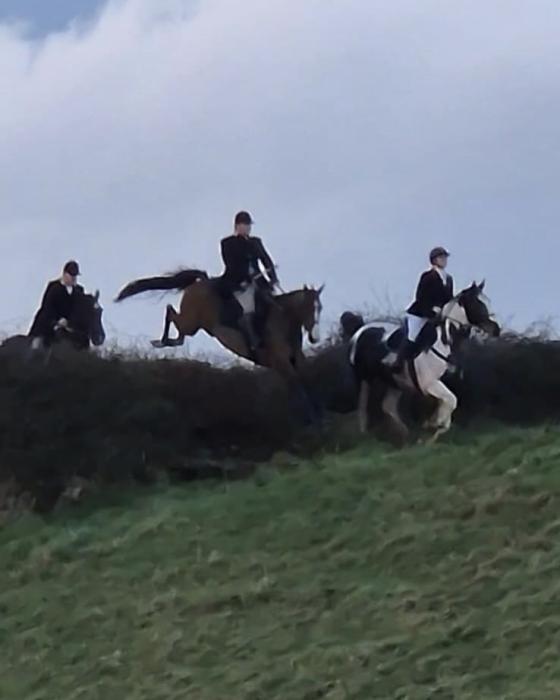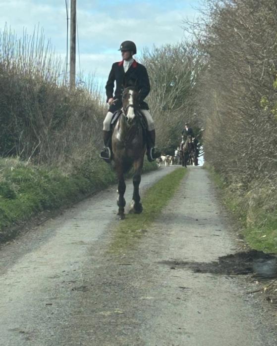 Hunted in both stone wall and ditch / gate country in Ireland. Stabled at hunt for two seasons, mainly teenagers ride in the field, but also used for whips horse and even stood in as huntsmans horse a few times. Very easy versatile horse who has been a great asset to the yard.