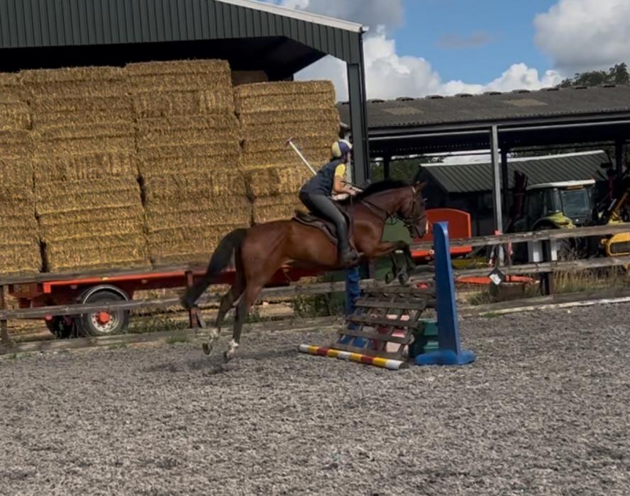 Confident jumping around a course of coloured poles and fillers. Careful, rarely touches a pole. Taken part in clinics and day rides. Would excel in riding club activities and one day event competitions.