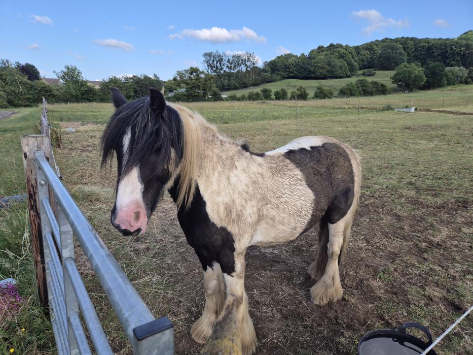 Nine year old piebald unregistered cob gelding. Lots of videos available! We have had him for nearly a year, still in touch with previous owner who had him for four years (and both of us would like to stay in touch) - with them he did hacking and an occasional arena hire so he's a low mileage pony. We have spent the last year exposing him to a bit of everything! He has amazing feet (no need for shoes), good for dentist, loading, travelling, clipping (have only clipped his feathers but was clipped when he came to us). Up to date with everything. He wouldn't be suitable for a novice because he is still green and can have sharp moments/cob opinion at times! Nothing we havent been able to work through though. He is super smart on the flat, excellent in traffic/out hacking, we have taken him on fun rides, cross country schooling, up the gallops, mounted games, hound exercise and pole clinics. I think he would excel out hunting. He needs either a small adult or competent child to continue his education. Reason for selling is youngest daughter isn't riding regularly enough and eldest is too big for him and has her own. He is happiest living out but he comes in in bad weather, he gets stressed if he's the last out/in so I manage this by making sure he isn't put in that position. Good with others I only have geldings but he was out with mares in previous home, respectful of electric fencing. No laminitis or any other ailments. He is sold from the field because we haven't had time to keep him in proper work since everyone went back to school. I'd be happy for him to go to a none ridden or ridden home, he just loves attention!