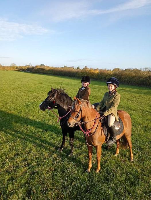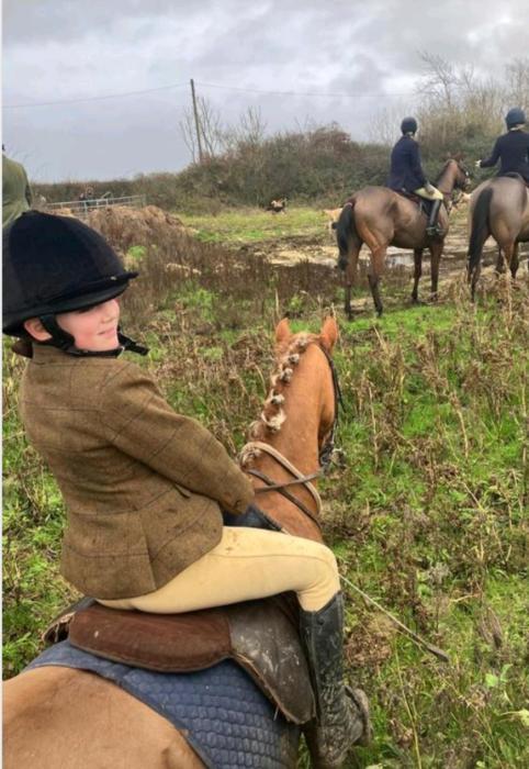 Pepper is good to hack alone and in company. Good in open spaces and in all traffic. Lives on a farm so is good with livestock and farm machinery. She is a lovely hunting pony who takes my 8yo out and took out a child who has never hunted before, looking after her beautifully.