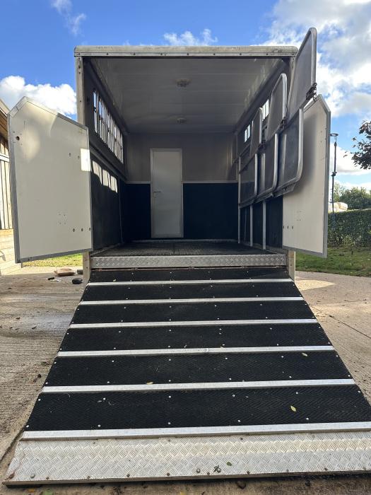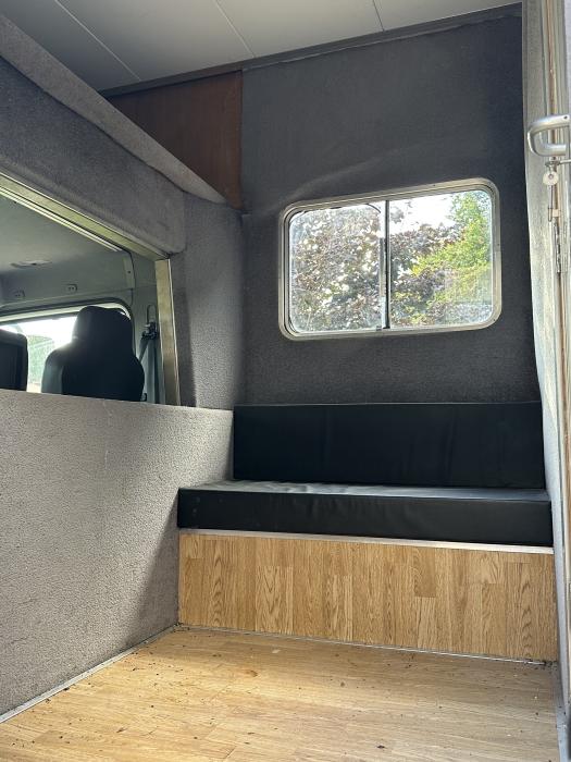 Cut through cab with changing/tack/equipment area with fitted bench with storage underneath