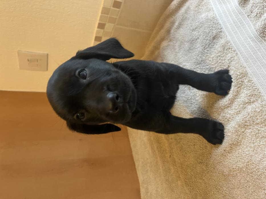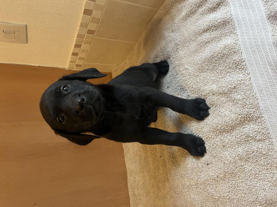 Dam (mum) is a Kc Registered black Labrador (Verrad Elvira). She has the most wonderful temperament. She has been a fantastic mother and a very busy one looking after 14.