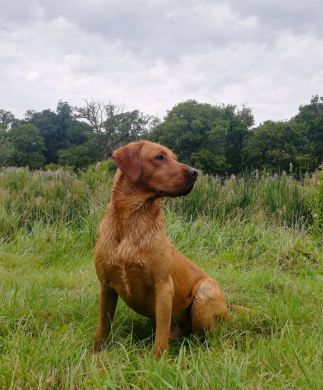 Sire (dad) MAGIC ZUBR, fox red Labrador.